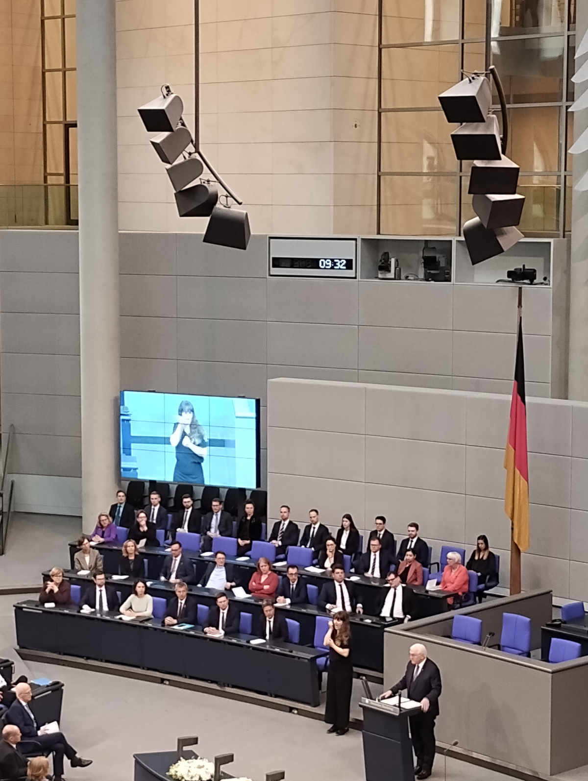 (4) At the end, the officials (and we, their guests) sang the national anthem, not joyfully, but rather mournfully, yet also somewhat defiantly. And I was happy to live in a reunified Germany, and proud of our Parliament.