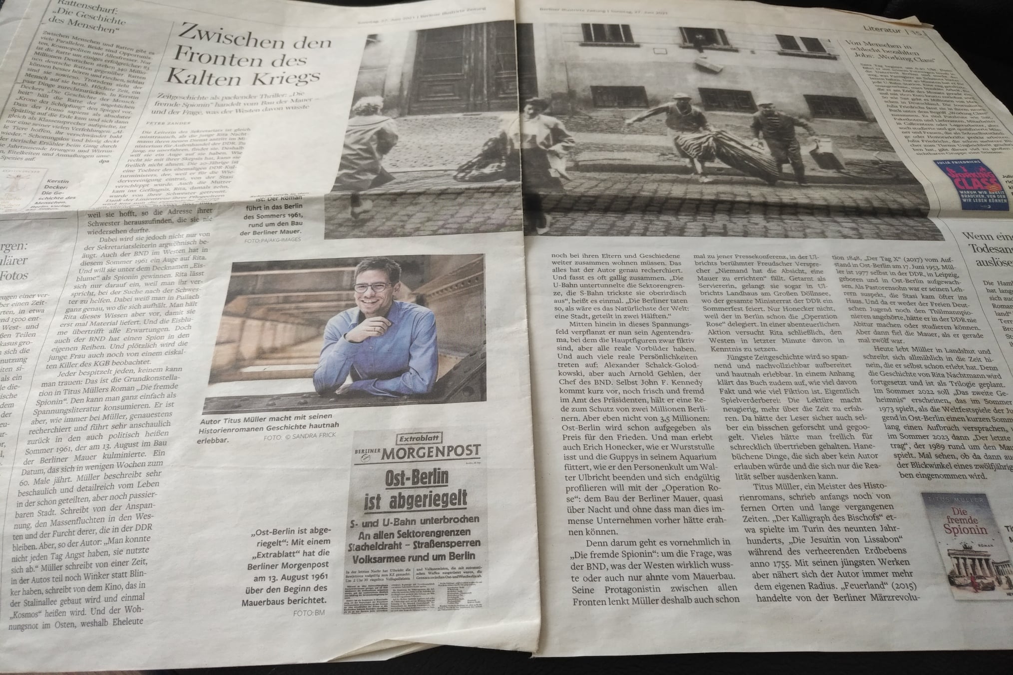 Today in the Berliner Morgenpost. On Thursday, I was en route to the Brandenburg Gate with Peter Zander, editor, and a congenial photographer. We were talking about my new novel. How excited I am to hear their opinion on it, and that the newspaper has published such an extensive article on it. Peter Zander wrote about feeling »goosebumps on his goosebumps« and praised it as »superbly researched. Even long-term residents of Berlin and those born in the city will learn details they’d never heard before. Our own city literally appears in a new light.«
